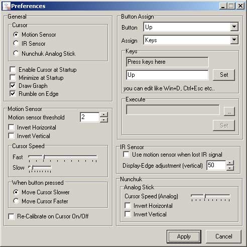WiinRemote还可以设置Wii Remote手柄的各项参数,设置界面如下图。